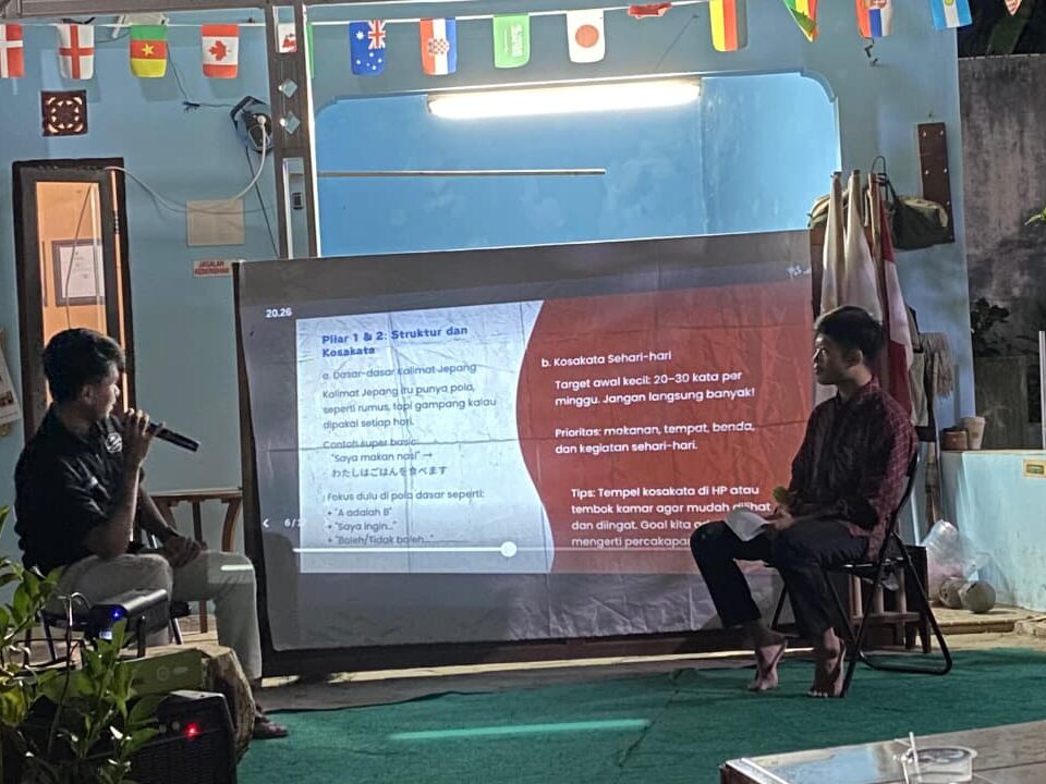 Talkshow pertama adalah “Peluang Kerja di jepang dan Potensi Karir saat Kembali ke Indonesia” dengan Narasumber Prassca Atka atau Prass-sensei yang merupakan Ex-Jepang, saat ini Prass-sensei adalah salah satu Intrepreter Bahasa Jepang di salah satu Perusahaan di Kota Cilegon.